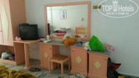 ОТЕЛЬ. Заселение проходило не очень быстро, но это было ожидаемо, т.к. народу приехало человек 40, главное, что на ужин мы успели. Номер нам дали хороший в новом корпусе 794, корпус самый дальний от море, но идти минут 5. В номере (студия 3-местный) 2-х спальная кровать 1,6м, односпальная кровать, манеж (боковина была чуть сломана, на фото видно),кухня:раковина, 2 комфорки (нет кострюль, зная это брала одну с собой), холодильник, шкафчик. Мусорное ведро, 3 розетки (обычные как у нас), 4 лампы (тускловатые, типа ночника, с освещением проблема есть), 2 тумбочки прикроватных, огромное зеркало с 2-мя тумбами, стульчик около зеркала, шкаф с 2-мя штангами с вешалками и 2 ящика, антресоль, внизу отделение для обуви. Кладовка, видимо для чемодана. Пол мраморный. Телевизор не ЖК (2 русских канала). Кондиционер над кроватью (не пользовались). 2 балкона (на одном из них столик. 2 стула (пластиковые), сушилка для белья. Ванная (не душевая), раковина, зеркало, унитаз (был не совсем чистый, сама покупала там средство и все мыла, т.к. были с маленьким ребенком мне так было спокойнее), один крючок, ерш, 2 мыла, 2 рулона бумаги. Полотенце для ног было или не отстирывающееся или грузное, остальные чистые (почитав отзывы у меня были с собой маленькие полотенца для лица и одно банное, местными почти не пользовались). Полотенец было по 1-му маленькому и 1-му большому и 1 общее для ног. Ночью было не много комаров, использовали свой фумитокс. Убирали раз в 3 дня, белье поменяли один раз по моей просьбе, когда дочку вырвало без проблем.