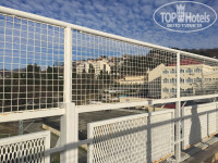 Территория- большая, есть где погулять, но огромное количество бездомных кошек и собак делают её неопрятной. Для детей есть Детская площадка и тренажеры на улице. Проход к морю через мостик, можно по лестнице спуститься, можно на лифте. Практически везде, кроме столовой, есть пандусы. Из развлечений- боулинг, бильярд, мини диско для детей, мультфильмы, развлекательная программа для взрослых.