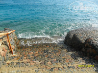 В-шестых, на пляже со стороны "Сфинкса" вход в море травмоопасный, с последней ступени лестницы приходится прыгать, а в воде камни. Можно, конечно, прыгать в воду с пристани, но это под силу только молодым. Лестница отвесная и неудобная для спуска. В лягушатнике мелко, это для детей и не умеющих плавать. Короче, выплыть в море проблематично.
