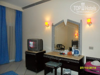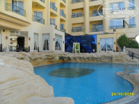 Отель снаружи выглядит довольно интересно, в коридорах красивые фотографии Нефертити, фараонов, пирамид и прочих египетских раритетов. Очень приличное лобби с мягкой мебелью и опять же со скульптурами фараонов. Вначале мне дали номер с видом на круглосуточную стройку, но я потребовала заменить. Второй номер был над бассейном, меня он вполне устраивал.