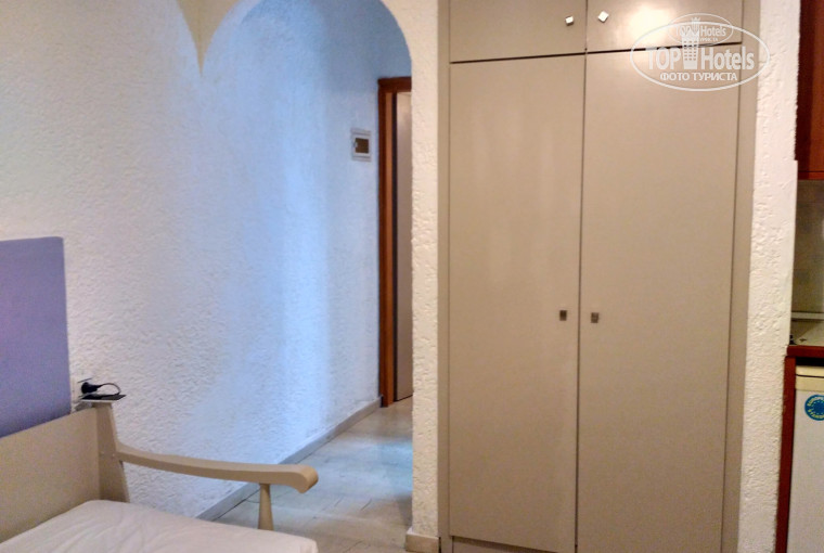 Кухонный уголок: у нас были апартаменты, это 2 комнаты. Там же есть и кух. уголок: раковина, что-то из посуды, стол разделочный, пара столовых приборов. Друзья жили в 1км номере, кухни не было.