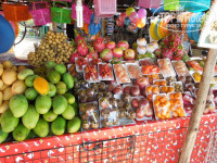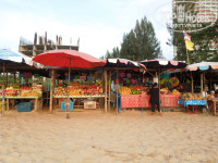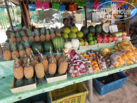Обедали обычно в номере. Брали на пляже креветки или рыбу. Когда понравившегося нам в первые дни окуня, не оказалось у торговца, он позвонил по телефону и сказал, куда принести рыбку. Ровно через 15 минут прибежал паренек с горячим окунем в фольге. Цена большого окуня 150 бат, за доставку денег не берут.