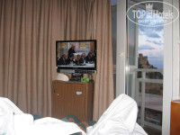 Номера небольшие, но не обшарпанные, вполне нормальные. Санузел тоже маленький, вместе с тем, снабжен всем необходимым. Главное - это красивейший вид на море и замок. Есть джакузи и маленький тренажерный зал.