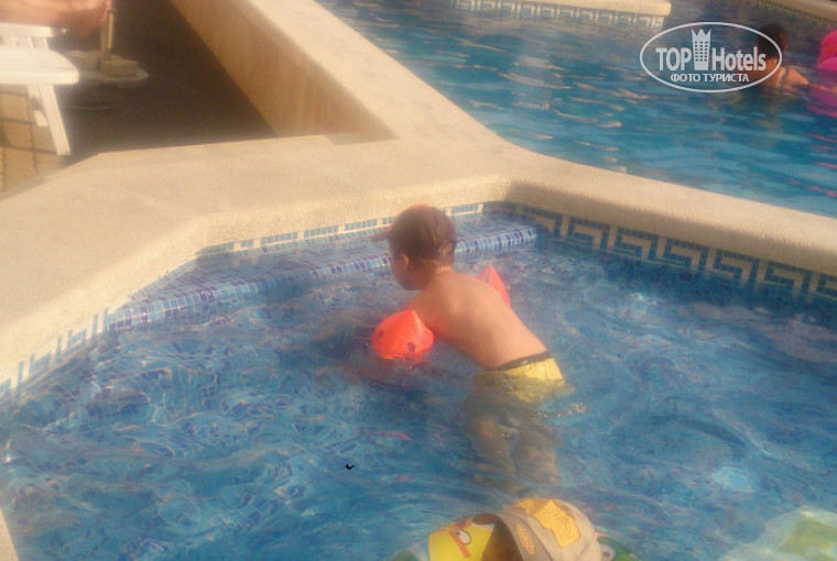 В бассейне купались каждый день, лежаков всегда хватало. На детской площадке ветрено, на ней находились редко.