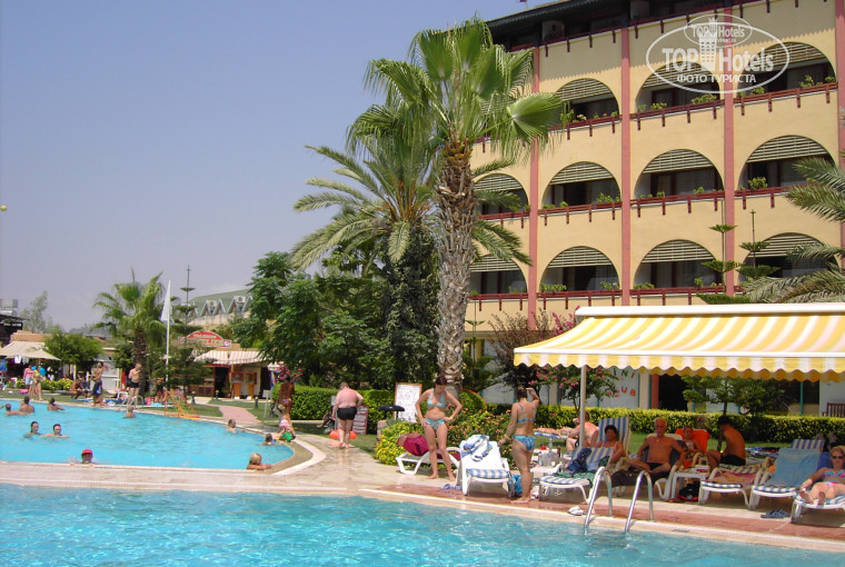 Мы отдыхали в этом отеле давно, но только сейчас я наткнулась на этот сайт и решила оставить отзыв)). мы ездили двумя семьями. Приехали в отель часов в 12, до этого произошел неприятный случай с чемоданом, его потеряли в аэропорту, все разобрали свои и разошлись, мы минут 15 пытались достучаться до сотрудников аэтопорта - бесполезно, типа не говорят ни по-русски, ни по-английски, но надо отдать должное туроператору Корал трэвэл - после их вмешательства чемодан нашли. Мы конечно опаздали на свой автобус до отеля, но нас не бросили, посадили в другой и довезли. Приехав в отель подождали минут 10 и нас заселили. На ресепшене был милый араб не говорящий по-русски, но не смотря на это даже пытался с нами шутить и веселить, денег за номер никому не давали. Нас поселили на 4м этаже, номер с балконом, окна на бассейн, а вдалеке море, в общем нам очень понравилось. Номера стандартные, но очень милые и чистые. Проблем с сантехникой, водой... не было. В номере полотенца, халатов нет. Еда более менее разнообразная, но для августа фруктов конечно было маловато, сейчас уже не помню мелочей, но фруктов точно было недостаточно. Зато сладостей было в изобилии! А поскольку я слодкоежка, это я запомнила оч хорошо)) Еще помню, что выбор еды был очень большой. Вечером ужин, все очень красиво, свечи, цветы из арбузов. Но ехала я туда не за едой, не за анимацией, она, кстати была, я ехала на море, а пляж там полный отстой!!! Мы ходили на пляж другого отеля, купаться там можно, а лежаки их занимать нельзя (браслеты другого цвета). На нашем пляже какие-то глыбы, грязь вместо песка, в общем разочарование было полное, потом привыкли, но большую часть времени провели в бассейне. До пляжа можно доехать, но мы ходили, идти минут 12, сложнее возвращаться, т.к. в гору.. Что касается в целом впечатления, оно осталось очень положительное. Персонал дружелюбный, уборка каждый день, лебеди на кровати))) Рекомендую этот отель для семейного отдыха, молодежи там будет скучно, а вот деткам очень хорошо, ими занимаются.