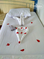 Номер удобный, уборка ежедневная,но без фанатизма)), по мере необходимости пополнялись шампунь, гель для душа, крем для тела, пакетики с кофе, чаем и сливками (в номере есть чайник, чашки), 1.5 л воды - ежедневно, смена белья и полотенец - ежедневно.. Раза три, за 2 недели, из полотенец выкладывали цветы, лебедей (чаевые мы оставляли через день). Были мелкие недочеты (в ванной не горела одна лампа), но их устранили и без нашей просьбы, а мелочи (сколы на плитке, подуставший номер), были совсем не существенные. Полотенца на пляже можно получать и сдавать ежедневно, а можно несколько раз в день менять пользованные полотенца на чистые.