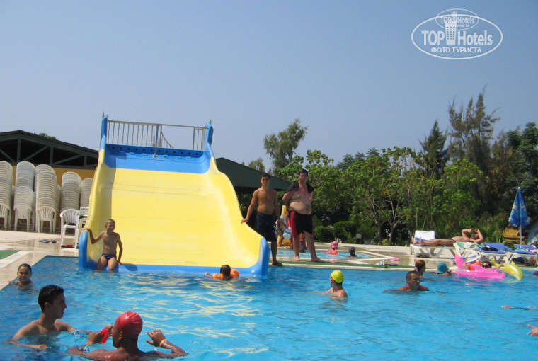 Отзыв пишу просто чтобы фотки отеля выложить в 2007 году, это мой первый раз в Турции был и нам все понравилось, заселили сначала в номер в высоком корпусе под крышей, там очень низкий выход на балкон и мы бились головами, попросили переселить, бесплатно на след день нас переселили в маленький корпус с видом на бассейн. Питание как в 4-ке, ела овощи, картошку, всякое острое и кислое не люблю, а тк все нормально, голодными не ходили. Пляж был хороший, в море остров есть, можно взять катамаран и сплавать туда.