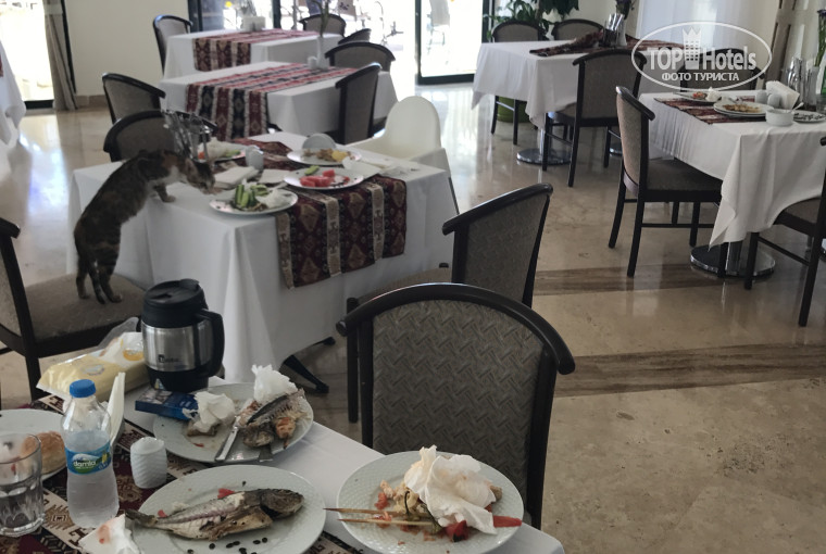 На данный момент нахожусь в отеле. Начну свой отзыв с размещения. У нас был зарещвмрован номер mood standart. При заселении нас разместили в номере 6111. Это номер для людей с ограниченными возможностями ( 0 этаж, унитаз с поручнем, душ : кафельный пол, шторка ( грязная) из ПВХ, сиденье деревянное прикрученное к стене ( откидушка)- черновато серого цвета ( в общем грязное дерево), и душ лейка с ручками держателями в стене. После нашего возмущения нам предложили разместится в номере life ( эти номера стоят дешевле mood), мотивируя тем, что свободных номеров нет. После "скандала" нас разместили в полагающемся номере. При размещении я познакомилась с гостями из Минска. Сегодня они переехали в другой номер, потому что обнаружили дохлую крысу у себя на террасе ( есть фото и видео снятые). Отдельная тема для возмущения - питание. Впечатление скудности, невкусности. И это не только впечатления. Сегодня турецкий день. В ресторане у бассейна из мяса только котлеты из курицы ( полуфабрикаты), котлеты для гамбургера. Нарезка овощей ( именно нарезки наструганные постоянно), яблоки, арбуз, дыня. Немножко пирожных. Фри. Основной ресторан - из рыбы - дорадо, куриный шашлык. Больше ничего мясного на гриле или готового - нет. Опять - нарезки - обрезки из овощей и фруктов ( посмотрите на фото). Станция спагетти - отвратительно невкусная. Нет ни одно вырезанного фрукта ( карвинга), несчастных три шарика при входе надутые гелем. Лукума нет вообще и нигде ( и это в Турции то). Так вот - ем лукума, ни украшений - нет вообще. Детский стол - это одна печаль. Если едете с малышом ( берите питание с собой!!!!!), я взяла только каши быстрого приготовления ( пожалела что не взяла баночное питание с собой. В 16:00 закрывается ресторан у бассейна и др 18:30 НИГДЕ нет НИКАКОЙ ЕДЫ ( даже снежков)... и это все включено 24 часа. Безобразие! Обслуживание в столовой отсутсвует. Размешаю фото со столом для самообслуживания, чтобы налить себе бокал вина ( находится на каких то задворках столовой). Столы убирают плохо. Ещё фото с грязными столами и кушающими на них котами. Я в отеле пока что 4 дня. Это впечатления за 4 дня. Что касается пляжа - его плохо убирают, заход в море - камни, далее песок. Море грязное. Немного о хорошем, дабы быть объективной! Хороший кофейный бар ( вкусный кофе), из напитков в лобби баре есть неплохое шампанское. Хорошая детская зона на улице. Посмотри что нас ждёт впереди. Позже дополню фото. Подкрепляю свои слова фотоотчетом.