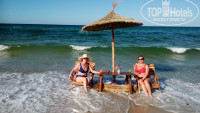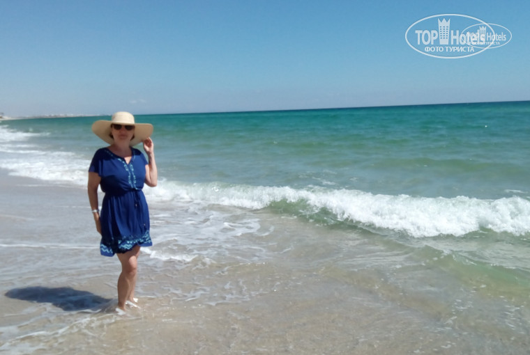 ПЛЯЖ - небольшой, но места хватает всем. Много зонтиков, лежаков ещё больше. Всегда в резерве стоят дополнительные. Лежачие места у зонтиков не закреплены, поэтому шезлонги можно перемещать по всему пляжу. Лежаки пластиковые, немного громоздкие. Сетка капроновая, на большинстве - продавлена, этакий мини-гамак получается. Без матраса пользоваться не комфортно (матрас стоит 2 динара в день), но можно приспособиться. Песок беленький, как манная крупа, с мелкой примесью естественного мусора (ветки, сухая трава). Акватория пляжа для безопасности огорожена буйками, дабы избежать контактов купающихся с катерами и гидроциклами. Заход в воду пологий, без растительности и камней, глубина начинается в 15-20 метрах от берега, до буйков метров 50-60. На пляже постоянно дежурят лайф-гарды. Реально следят за поведением детей в воде, предупреждают свистками. Вдоль берега в течении всего дня курсирует охранник из местного ЧОПа (с рацией). Однажды наведывалась вооружённая полиция. Раздевалок на пляже нет, но переодеться можно рядышком, в туалете за бич-баром. Есть душ при выходе с пляжа. Пляжные полотенца выдают и меняют у бассейна (официально с 10:00, но мы меняли намного раньше). В первой половине дня вдоль пляжа у кромки воды прогуливаются местные торговцы фруктами, коврами, парэо и сарафанами. К лежакам не подходят, предлагают свои товары издалека. Так как отель расположен в спальном районе г.Сусс, и рядом с ним нет других отелей, то слева и справа от отельного пляжа пустая территория (по ней можно прогуляться и сделать красивые фото). Вдалеке, на диких пляжах, в выходные дни располагаются местные отдыхающие. Но разглядеть их можно лишь при большом желании, в наш отдых они не вмешиваются. Музыка на пляже во время проведения анимационных программ довольно громкая, но досаждать и вызывать неудобство может лишь, если вы расположились в непосредственной близости от колонок. У нас 4-х летний малыш спокойно спал на пляже в дневное время.