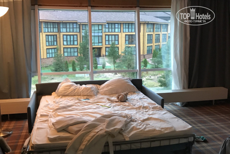 Номер был хороший, огромные окна в пол, у нас 2 взр + 2 реб в номере 1 кровать двуспальная и большой диван ( был уже застелен) вот что то со шкафами беда((( шкаф один прям при входе и как то вещи разложить не получилось в нем(((