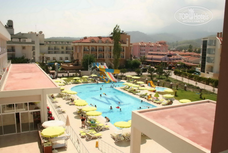 Мы с женой в отель приехали 7-го августа в 9-00. Практически весь персонал говорит по-руски. По всей видимости нам повезло, т.к. заселили нас уже в 10-30. Номер достался на 3-м этаже с видом на бассейн и горы. На самом деле это и есть лучший вариант, т.к. из других номеров балкончик выходит или на улицу или на другие отели. По началу ванная не текла, течь начинала, если с женой по очереди долго мылись после моря, если же делать паузы в 5-10 минут, то ничего не текло. Номер был сразу за лифтом. Это и была та ложка дегтя в бочку меда номера, было слышно как срабатывает сигнал прибытия у обоих лифтов. Особенно добивало, когда дикие дети баловались этими самыми лифтами. Через 1 день мозг сам перестал замечать этот звук :) (включил фильтр :) В целом номером остались довольны. Сейф в номере платный (2 доллара в сутки). После того как стали оставлять чаевые на тумбочке, номер стали прибирать с большим энтузиазмом. Под конец отдыха скопилось 5 рулонов туалетной бумаги. Зачем оставлять новый рулон, если видно что уже есть 2, я, честно сказать так и не понял. Особенно умилили творческие способности горниных - покрывала и полотенца каждый раз выкладывали в виде новой фигуры.