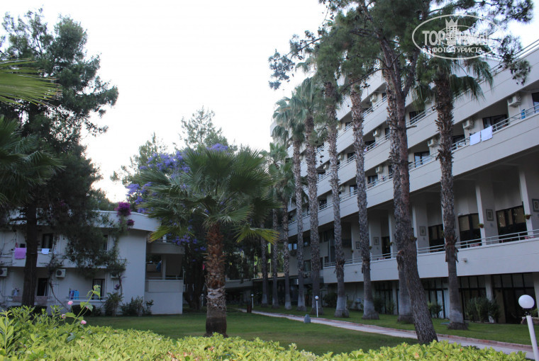 Территория:компактная,очень зеленая,везде сосны,пальмы,цветы.Все рядом,удобно.