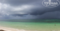На отельном пляже все чисто и ухожено, дикий пляж в водорослях.
