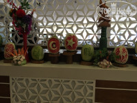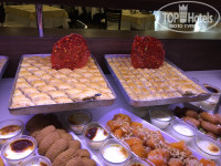 РЕСТОРАН. Широчайший ассортимент еды. Рыба, мясо, сыры, овощи, зелень, салаты и куча всего. Стол десертов был мой любимый. Фрукты: яблоки, сливы, груши, нектарины, персики, апельсины, виноград, дыня и арбуз. Но сами понимаете пиковый сезон. Даже есть диетическое питание. Для детей отдельный детский шведский стол в их зоне, но естественно не запрещено брать пищу из основного зала. Повара и официанты работали на высочайшем уровне. Сервировка столов была оперативной. Очередей за стол не было. Наливают вино вежливые официанты. Все улыбаются, приглашают вечером на шоу программу (каждый вечер новая тема и шоу).