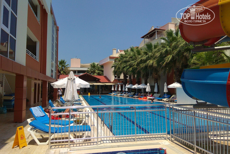 Персонал и контингент отдыхающих [5]. Персонал хороший, в меру приветливый. Оба бармена и один из ресепшен-клерков говорят по-русски. Уборщицы мелькают как тени, незаметные и неуловимые, и при этом свою работу делают достойно. Контингент в целом адекватный, упитых в зюзю дебилов и прочих неадекватов замечено не было. Раздражали разве что бегающие-орущие дети, да парочка возжелавших женской ласки молодчиков с вечно скрипящими кроватями и ахами-охами среди ночи. По странам/нациям - в мой заезд были в основном русские, украинцы и белорусы, периодически попадались турки, других не видел.