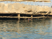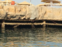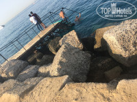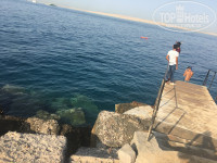 Второй минус - это море. Я люблю наблюдать как красиво небо соединяется с линией моря, здесь этого нет. В отеле кусок моря отгорожен бетонной стеной, типо мостиком, ржавым и полуразрушенным. Это можно будет увидеть на моих фото. Создается впечатление большой лужи, где все барахтаются. А если заходить с пирса, то там сразу глубина метра 6 и сильные волны, тебя может занести.
