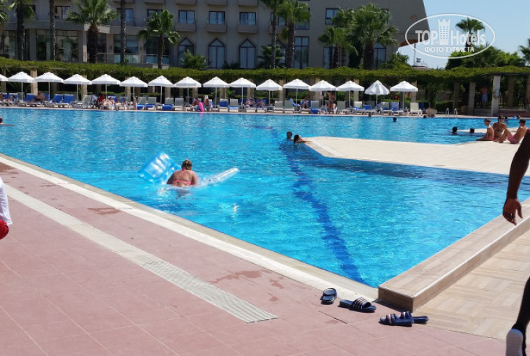 Отдыхали в отеле с 28 июля 2017 по 8 августа 2017. Рейс нам перенесли, так что прибыли в отель уже в пятом часу. Ехать от аэропорта достаточно быстро, примерно 25-30 минут. По прибытии сразу заселили. Номерной фонд конечно староват, но это не напрягает. Вирус в отеле блуждает, но не уверена, что коксаки. Слышали на пляже родители деток жалуются на рвоту и температуру, ни о каких прыщах речи не было. Согласна с отзывами по поводу личной гигиены, её необходимо соблюдать. Территория отеля не большая, особо сходить не куда. Анимация слабовата. Море великолепное, вход превосходный. На пляж приходили часов в 10 в начале 11. Лежаков свободных было достаточно и на газоне и у моря, за все 12 дней не вставали рано, чтобы занять лежаки. Уборка номеров происходит каждый день, правда если Вы находитесь в номере в тот момент когда у Вас захотели убраться, то говоря уборщице зайти по позже, рискуете остаться с не убранным номером, т.к. она забудет. Но в этой ситуации приходя и видя не убранный номер я брала грязные полотенца подходила и меняла у уборщицы. В ресторане еда разнообразная, проблем с едой не было, особенно обалденная пицца. Посуда в ресторане грязноватая, смотрите внимательно. Вечерами ходили гулять в соседний отель Кaya Palazzo Golf Resort 5*, там анимация на высоте. Ходили в The Land of Legends, он находится в 2 км от отеля, пешком примерно 30 минут. Каждый день в 21:00 там начинается шоу танцующих фанатов и шоу прогамма. Очень красиво и совершенно бесплатно, турки называют его местным Диснеелендом. Один раз посетить можно. Резюмируя вышесказанное могу сказать, что отель не плохой, но не стоит таких денег.