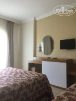 Всем доброго дня! Не пишу обычно отзывы, но сейчас решила написать как все было))) ну так вот: сначала мы купили тур на 2взрослых и ребенока 5 лет , а потом дома стали читать отзывы. Были в шоке от написанного. Прилетели, до отеля 2 часа на автобусе, но там прохладно, гид провела ознакомительную беседу, время прошло быстро, в 10 утра были на рецепшен, заселение в 14-00. Кто то остался там ныть на диванах, а мы бросили там же чемоданы, достали купальники, и пошли на море, вода теплая, просто класс! Где лежаки там крупный песок, а непосредственно у воды галька, в воде смешано, встречаются большие камни. Ничего не платили, номер дали на первом этаже, он как второй. Плюс в том что не надо пользоваться лифтами, которые надо ждать и париться там)))) номер хороший, чистый, кондиционер работал хорошо и всегда, даже когда уходили из номера, главное чтоб балкон был закрыт, поэтому когда возвращались в номер нас ждала приятная прохлада??Отель очень большой, полностью заполнен, поэтому везде много народу. Первые дня два чувствовалось нехватка персонала, я слышала , что отель отдали в аренду и пока не налажена работа, поэтому с едой было не очень и грязненько. Потом стали кормить просто на убой)))) без изысков конечно, как всегда салатики, зелень, стали печь нагетсы, блины, картофель фри, сосиски, всякие лепешки, и очень много мяса. Правда и потом все это опустошалось: люди набирают по несколько тарелок с горкой, хотят за раз весь ассортимент набрать , а потом все это оставляют. Первые дни со столов долго не убирали, а потом даже скатерти стали стелить)))) бар есть на рецепшен до 22 часов, у ресторана открыт во время кормёжки, и у бассейна круглосуточно. Полотенце брали свои, потом у нас их стырили стали брать из номера))) а так там можно брать на рецепшен под залог 5 долларов. Дааа... еще лучше брать с собой доллары а не евро, потому что например брали тур на яхту так что 100 долларов что 100 евро, одинаково, не перечитывают. Бассейны чистые, горки классные, аниматоры утром занимаются с детьми в отдельной комнате, и вечером в 21-00 проводят детскую дискотеку, утром для взрослых прикольная аквааэробика, дартс и еще что то. Мы везде участвовали, то в море, то в бассейн, скучать было некогда. После бассейна открытое кафе,бар, он же как пляжный, потому что пляж оч близко: несколько шагов и начинаются лежаки. Про уборку в номере: убирали 3 раза, но делали бы и чаще, просто всегда попадали к нам в тихий час и мы отказывались, просто меняли полотенца, давали простыни, они всегда со своей телегой в коридоре, так что в любое время у них можно все попросить, доброжелательные. Вообще со всеми можно договориться, если что то надо, за просто так, может от того что мы всегда были на позитиве )))Вечером после детской дискотеки, собирались в открытом кафе, у бара, было весело, хорошие люди нам встречались, пили пиво, оно кстати там хорошее))) можно и к морю прогулятся по дорожке, охранник стоит, но не запрещает, правда по вечерам там какой-то запах помойный, может это и от другого отеля , он прямо за нашим забором. Есть кальян за 10 долларов, на рынке в кафе за 5 ( ну так на заметку) Очень хотелось вечером потанцевать, или музыку послушать, но после 23-00 не разрешали, на телефоне музыку включали, так охранник все к нам подходил и за подмогой бегал? Хотя в соседнем отеле всегда была музыка. Правда каждый вечер приглашают ехать на 