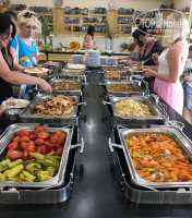 Ресторан. Два зала с кондиционерами и есть ещё столики на открытом воздухе на веранде. Что понравилось: всегда были места, очень быстро убиралась грязная посуда со столиков, не было очередей( если только за мороженым), не было нехватки ложек, чашек и т.д., все что заканчивалось быстро восполнялось. Питание , на мой взгляд очень приличное. Хороший выбор и всегда все вкусно. Фрукты, овощи, говядина, курица, рыба, на гарнир рис, картофель , гречка, два вида супа. Очень вкусные десерты.