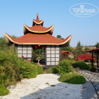 Территория очень красивая, зелень, цветы, гранаты, апельсины, лимоны, бананы, растет все. На территории отеля разбит очень красивый японский сад.