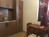 Теперь, самая важная тема в моем отзыве - это описание самого жилища и нашей оценки. Нас разместили на 1 этаже, в третьем номере, с одной двуспальной кроватью и одной односпальной. Номер имеет статус студии. 29м на двоих вполне хватает, учитывая наличие кухонного уголка со своим столом. В кухне имеется достаточное количество посуды: тарелки, бокалы, кастрюли, приборы, мочалка, тряпка. Только моющего средства не было. Единственное, после трапезы хорошо убирайте стол, не оставляйте крошек, так как муравьи здесь незваным гостем убирают за вами все, что иногда напрягает. Но они абсолютно безобидные и воспитанные, едят и молча уходят обратно, не покоряя просторы всего номера. Кондиционер исправен, даже лучше, чем наш московский) Также сейфа не было в номере, поэтому приходилось либо прятать деньги, либо носить с собой. Ванная отличная, просторная, жили 11 дней с одним рулоном туалетной бумаги, сообразив в последний день, что все остальные лежат в полке под раковиной)