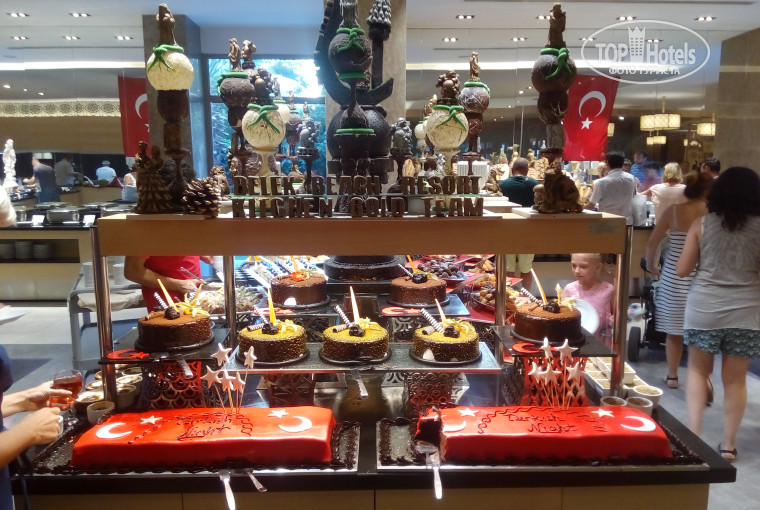 Добрый день. Начну с того что путевку покупали за 2 месяца и не думала что за такую небольшую сумму за путевку, может быть так здорово, не ожидала такого сервиса и питания. Ездили с ребенком 4 года (именно там ему и отметили день рождение) и с мамой. Заселили быстро, номер хороший дали, не чего не доплачивали. Ресторан на высшем уровне, хотя сезон заканчивается все равно держат марку до последнего. Анимация на высшем уровне, в день рождения ребенка поздравили все работники отеля, а именно: с ресепшене пришла девушка в 9.00 и пренесла шары в номер, далее уже по нашему заказу пришел тегренок (переодетый аниматор) в номер поздравили нас, фотки, шарики, обнимашки. Далее поздравил гид и принес подарки, далее отель сделал комплимент в качестве доставки фруктов и бутылочку вина тоже в номер, ну и конечно вечером в ресторане был накрыт стол и для празднования и очень эффектно вынесли торт со свечами, было безумно приятно и мне и ребенку. Вечером тоже аниматоры на мини диско, на сцене поздравили нашего малыша. Хочу сказать про анимацию, все ребята зажигательные, улыбчивые и общительные, все дети в восторге, вешались на них и даже видела как девочка одна плакала когда они заканчивали дискотеку и прощались с детьми. Для взрослых постоянно что то устраивают, то баскетбол, то водное поло, то аэробику, конкурсы на бассейне и многое, многое другое. От шоу которые проходят вечерами не могли оторваться, каждый день что то новое. Было весело всем. И самое главное, мы не одного ребенка с вирусом не видели и сами не болели, хотя из бассейна вообще не вылезали. Буду в Турции приеду только сюда. Спасибо всем большое. Все было на высшем уровне))).