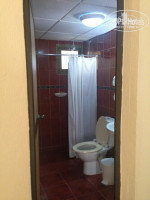 В ванной есть всё необходимое. Места много. Номер с видом на коттеджики. Территория не большая, но погулять будет где.