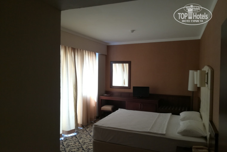 Номер достался вполне приличный, если не считать мелких дефектов мебели.Всё работало(фен,ТВ и пр.)