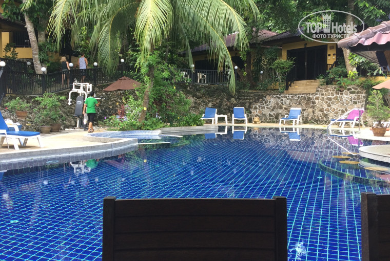 Итак начнем, заселили меня быстро, сотрудник донес чемодан до домика и удалился, бунгало достался на первой линии, так сказать, с видом на бассейн. Номер просторный, освещение более менее, удачно сделана душевая кабина, вся сантехника работала без нареканий, как впринципе и все что было в номере. Из принадлежностей туалета: был шампунь, мыло брусочек, шапочка для душа и ватные палочки. В номере есть сейф, но я все хранила в чемодане, надо сказать что ничего не пропало, это большой плюс. Каждый день оставляют две бутылочки питьевой воды в холодильнике, если вы любите чай, то термопот вам будет кстати, ежедневно будут добавлять два пакетика кофе и чая, сахар, сухие сливки. В номере есть пляжные полотенца, два зонта, на крыльце сушилка, но я ее разместила в комнате, так как на улице ничего не сохнет в сезон дождей. Кондиционер работал хорошо, телевизор тоже, есть два русских канала, иногда в плохую погоду развлекал меня. В отеле есть не плохой по скорости вай фай, но его работа осталась для меня загадкой, он то есть, то его нет. Если вам нужен интернет, то лучше пользоваться местной симкой, интернет хороший, но безлимитный тариф я не нашла. За время моего отпуска не было проблем ни с электричеством, ни с водой. Горячая вода была всегда, что меня приятно удивило! Из минусов могу отметить: мало розеток, половина из них разболтана и не работают, одна тумбочка на двухместный номер, не работал замок запирания изнутри, пятно плесени на потолке ( когда идет сильный дождь вода начинает просачиваться куда то под черепицу и интенсивно капать, громко!!) Завтраки очень простые, слишком простые я бы сказала, яйца в нескольких вариациях, оладьи, которые они называют панкейками, хлопья, тосты, масло и джем в мини упаковках, ( как в самолете раздают), иногда были супы, такие отвратительные на вид, что даже не было желания их пробовать, чай, кофе, молоко, вода, сок, из фруктов у нас был арбуз и ананас все две недели.