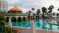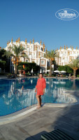 Отель большой,писать нужно много поэтому по порядку.я думаю что во многом впечатления зависят от заплаченной суммы так скажем цена-качество.тур был куплен за 54000 на двоих на 7 ночей с вылетом из Москвы.отель отработал эти деньги с головой и шапкой.И так 1) ресепшен простой,абсолютно нормальный,встретили шампанским,заселили за 10 минут,русско говорящая менеджер Елена целый день там и всем помогает,записала нас в китайский ресторан ля карт,рассказала чем можем пользоваться,а пользоваться можно абсолютно всем на территории комплекса, только, главный ресторан у каждого как бы свой ,общались с людьми из Фулии сказали что питание такое же.2)номера- достался на 1 этаже с видом на внутренний двор и детский клуб,рядом детская площадка,было тихо никто не мешал детей растаскивали спать часов в22, в номере мебель не ушатанная ,достаточно хорошая,телевизор плазма средних размеров,холодильник тоже в норме,балкон приличных размеров,сантехника новая, унитаз инсталяция,есть гигиен.душ,ванная с дверками,освещение в номере хорошее,шкаф купе большого размера , вешалок много, и что ценно для меня кровати удобные и наличие одеял с пододеяльниками, терпеть не могу пледики.3) пляж - он просто шикарный лежаков много всегда хватало,брали по 2,в тень и на солнце раньше 10 не приходили 4) территория - ухоженная,зеленая есть где пройтись,много зон отдыха и снек и пулбаров 5) напитки - соки пакетированные,кола ,фанта и пиво баночные, вода в бутылочках,пиво есть еще и разливное - мне понравилось,вино бутылированное,никаких юппи и аппаратов с непонятной водой,бар в номере всегда пополнялся,вот - это показатель 6) ресторан - фраза народа "голодными не останетесь" начинает вызывать во мне злобу, за неделю были перепробованны язык говяжий,мясо индейки,кебабы,мясо говядины ,баранина,рыба различного приготовления ,овощи разные и гриль и тушеные и свежие,различные супы включая борщь, фрукты спелые хорошего качества, гарниры различные ,выпечки море,завтраки обильные, всегда есть несколько каш ,считаю что питание есть для любого возраста ,курица просто как хлеб,7) анимация- работает, детей развлекают взрослых тоже,хорошие танцевальные шоу ,народ активно участвовал в конкурсах,шикарный кофехаус,алкаголь как везде,есть живая музыка,Да действительно попадается иногда не очень промытая тарелка в ресторане ,но вопрос просто решается ,отложишь в сторону и возьмешь другую,уборка в номерах обычная,мы не свиньи у нас всегда чисто,полотенца всегда клали.В целом отель понравился.людей с коксаки не видела,взрослые кормят своих детей с утра до ночи картошкой фри,а потом жалуются что блюют и дрищют,наблюдали в ресторане чем мамаши детей кормят - поражают своим воображением по поводу детского питания.В китайском ресторане вкусненько,утка по пекински понравилась,раз в неделю креветки,провели октоберфест. Много немцев и турок думаю это показатель.Мороженное и на пляже и в кофехаус .вайфай работал абсолютно везде,в номере стоял дополнительно роутер,в ресторане работал ,в барах тоже, и на пляже ,мы это заценили, первый раз так ,обычно только в лобби