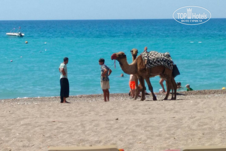Проснувшись рано утром бодрые( после Турецкой бани и массажа ) были очарованы красотой Средиземного моря. Пять минут идти до пляжа. Берег галька мелкая, песок. Свободные лежаки есть и матрасы тоже. На пляже нас встретил Исмаил работник пляжа (потом он нас встречал каждое утро)-угощал нас и других отдыхающих фруктами и вкусным чаем. Нам было очень приятно, что о нас заботятся . Еда в ресторане нам очень нравилась .Большой выбор блюд, свежие фрукты, арбузы, дыни. Из алкоголя в баре нам очень понравилось местное вино, хотя выбор напитков был большой. Территория отеля небольшая, чистая с самого утра моют, подметают дорожки , выложенные плиткой, убираются в номерах. Персонал в отеле очень приветливый, многие разговаривают на русском языке.Нам было очень весело в отеле -аниматор был большой молодец ! мы познакомились там с новыми друзьями из Москвы, Екатеринбурга, Омска и из Германии.У нас остались обо всех незабываемые впечатления !