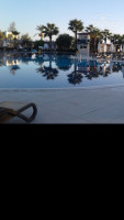 2. Питание. Просто везде и весь день. Да, своеобразно, но надо учитывать, что мы не дома и есть национальные традиции и вкусы. Перепробовав различные блюда вы всегда найдете, что-то на свой вкус. Завтраки и обеды традиционные, на ужин морепродукты и прекрасное мясо. Рулеты из теста фило с сыром или мясом, сыры на любой вкус (твердые, творожные, соленые, с зеленью...). Мороженое, особенно манго и лимон, ну ооочень вкусно. В баре у пляжа тот же обед:зелень салаты, оливки, гарниры, курица, фрукты.... Везде в свободном доступе вода в холодильнике, соки, чай, кофе. Причем чай на любителя из пакета или горячий заварной из чайника, кофе из машины или по турецки тебе сварят. И очень приятно, что официанты не следят за тобой как надзиратели. Чувствуешь себя расслабленно.