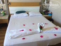 Но надо быть справедливым. Сначала, когда мы жили в стандарте на 3 этаже она было. Горничная драила номер до блеска, плела гусей и была просто душкой. Вот не жалко чаевых ни секунды. А здесь был какой то абсурд Полотенце для ног у нас появилось дважды. Банных сначала не хватало, а потом (назло наверное) их притащили 10 шт. И плюс 8 шт лицевых. Но для ног нет). Полы наверху мадам не мыла вообще ни разу (наверное лестницы боялась :-)). На балконе один раз. В какой то момент я психанула (когда нам на 4-х оставили "жопку" рулона туалетной бумаги) и пошла жаловаться Юнусу. ОН округлил глаза, охал ахал, вызвал дедушку уборщика, тот принес нам все необходимое, но тетька была непрошибаема. Полы мыть она так и не стала. Объяснилось все просто. Нормальный персонал, не выдержав прошлогоднего кризиса, нашел себе новую работу. И в этом году встала оч остро проблема персонала. Его не было. Поэтому брали всех подряд. Надеюсь, в след сезоне они решат этот вопрос.