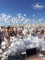 Идти пешочком мин 5 по красивой территорий чужого отеля либо ехать на тарантайке. Мы и так и так добирались, как попадется. Не напряжно вообще. Сам пляж отличный! Большой, просторный, в любое время полно свободных лежаков (на зависть соседнему отелю). Милый дядька бич-бой всегда улыбался и приносил нам матрасы. Пару раз была пенная дискотека, не на нашем пляже, но зазывали всех и народ с радостью бесился в пене. Весело!
