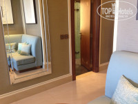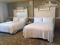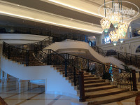 В каждом отеле Астория есть своя аллея павлинов и часы, эта же традиция соблюдена и реализована с арабским шиком в Астории в Рас-эль-Хайме. Часы выполнены из золота цвета шампанского и по форме напоминают жемчужину. Аллея с витой лестницей спускается к огромному фонтану, окружённому уютными диванчиками. Открылся отель в 2013г, но до сих пор остаётся единственным люксовым отелем на территории Рас-эль- Хайма. Отель строили изначально для шейха, поэтому использовано много элементов дворцового интерьера. Павлин, подаренный шейху племянницей, сделан из драгоценных камней, красуется в закрытой витрине напротив золотых часов. К слову сказать, фонтан позволяет сохранить приватность, гости отдыхая на диванчиках не слышат друг друга, что позволяет максимально расслабиться даже в зоне лобби. Простор чувствуется везде, номер тоже очень просторный, с гардеробной комнатой и, если повезет, с балконом) В номере потрудились дизайнеры, продумав детали интерьера, удивила люстра, сделанная из кораллов. Интернет бесплатный, кроме номера. Но если зарегистрироваться на ресепшене в программу лояльности, то в номере интернет тоже будет бесплатным.