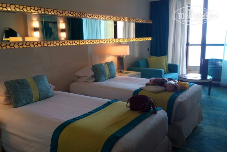 Очень удачное расположение отеля, на самом берегу! Вид из окон выходят на стройку очередной пальмы, но это не критично. Все равно видно море, виден отель Атлантис в далеке, ночью все в огнях! Питание было завтраки, но они на высоком уровне (т.е. можно за завтрак поесть все что угодно, и каши и горячее как на обед, и сыры 4 вида, и семга..ахх только шампанского к ней не хватало)). Покупали одни раз ужин (100дирхам) просто нет слов (был тематический морской ужин), просто глаза разбегаются от многообразия! Номера тоже без претензий, все чисто. Просили гладильную доску, доставили без проблем. Депозит не оставляли, попросили убрать мини бар и все! Оплатили только тур сбор (на двоих он вышел 200дирхам).На ресепшине русскоговорящая девочка, по всем вопросам к ней. Пообедать или поужинать в районе нашего отеля можно было найти без проблем (как было написано про ресторан Золотая Вилка, так эту сеть ресторанов закрыли всю полностью в ОАЭ) Ливанские, Арабские, Индийские рестораны...очень вкусно и недорого поесть средний чек 50 дирхам на одного). Метро в 200 метрах от отеля (желтая новая ветка станция №2). Если появится возможность, то в следующий раз опять вернусь сюда на отдых))