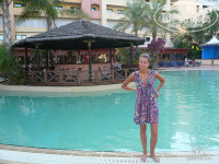 Ездили летом в свадебное путешествие! От отеля я просто в восторге - большая,красивая территоря, до моря мин. 5,пляж хоть и городской,но очень чистый, там есть бар с напитками и сендвичами(платно).лежаки платно,но можно купить матрасы (3-6-8 евро)Рядом с отелем набережная-куча магазинчиков(там много русских работают, так что если что-помогут что-то объяснить), кафе,дискотек,ресторанов итд. есть спа-центр, сауны,джакузи,теннисный корт. Номер был отличный -с выходом во внутренний дворик с бассейном.Бассейн маленький и лежаки уже занимали с 8 утра, после завтрака уже все заняты, но делать там нечего.Кондиционер работает хорошо,несколько режимов,негромко. Мебель в номере хорошая, нестарая.Убирались каждый день, а если ещё и евро оставить, то совсем хорошо уберутся. На рецепшене была только одна женщина,говорящая по-русски, но она была не каждый день,но если что-то важное,ей звонили по телефону и она помогала. Официанты в баре очень вежливые,улыбчивые.Единственно,что не понравилось-так это еда. Питалась только завтраками и сендвичами в снек-баре.Еды много,но для меня есть нечего.Может просто мы не привыкли к такой еде!?!?По четвергам рыбный день-куча креветок, раков,улиток,мидий.