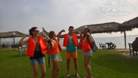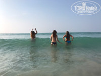 Мы пешком ходили на общий пляж, из отеля выходите и направо, 1.5 км и вы упретесь прямо в море, там шикарно просто: громадные волны, песок как манка, только пляж грязный очень и местное население за тобой наблюдает. Доллары не особо в пользовании у них, меняйте в обменниках. Питание однообразное, у нас были только завтраки, омлета на всю жизнь наелась))). Каждый день две бутылки с водой 0,5 л. Воду можно набирать в столовой без проблем.