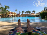 Добрый день! Вылетали из Кустаная прямым чартерным рейсом авиакомпанией Sunday Airlines с прилетом в аэропорт города Шарм-Эль-Шейх, самолет Boing 757, чистенький, питание и сервис на борту великолепные, напитки без ограничения, сок томатный не заканчивался!))), время в пути 5 часов 40 минут, обратно 5 часов 20 минут. Заполнили миграционные карты, визовый сбор платить не стали и вам не советую, если соберетесь на экскурсию за приделы Синайского полуострова, то вам гиды в отеле за те же деньги привезут эту визу! Встретили в аэропорту, трансфер на мини- вэне составил 10 минут, нас очень радушно встретил неплохо говоривший по русски молодой человек на рецепшен( к сожалению забыл его имя), снял копии паспортов и пригласил пообедать, после обеда выдали ключи от номера 6424, на первом этаже, чемоданы любезно помогли донести до номера и принесли еще одну кровать, т.к. нас было трое. Номер стандарт не большой, три кровати заняли почти все пространство в номере, но нам хватало, кому нужно больше пространства советую брать Делюкс, место значительно больше! Мебель конечно старовата, но вся качественная, сделана еще из дерева, а не из опилок, как современная, все работало исправно, дают только один ключ на двоих, но для нас не было ничего страшного мы выходили через балкон! На втором этаже это будет не реально!))) Шампуни и гели пополняли регулярно, но у меня были свои! Комаров сначала не было, но к концу отдыха стало ооочень много, всем советую взять фумигатор и спиральки на улицу, чтобы спать спокойно! Отель расположен на второй линии сразу за улицей Сохо сквер, что очень удобно, вечером можно погулять, сделать фото с красивыми фигурками. До пляжа курсирует автобус, каждые 30 минут, но мы ходили пешком, идти минут 10 неторопливым шагом, можно пройти через территорию отеля Саввой и поплавать в их бассейнах, барами правда пользоваться нельзя! Пляж хороший песчаный, лежаков хватало всем, хорошая волейбольная площадка, почти каждый день рубились в волейбол, красивый коралловый риф, пантон метров 25, пластиковый, вход в воду только с пантона, рыб не так много, но день на день не приходиться, я повстречался с "наполеоном", нет у меня не белочка была!))) Рыба такая губастая, ооочень большая и красивая! Вода где то +23С, каждый день все теплее и теплее, температура воздуха +30С, ветра почти не было, что удивительно для февраля! Территория у отеля великолепная, вся зеленая, много бассейнов, некоторые с подогревом, в т.ч. основной бассейн. Питание тоже отличное, хоть и не сезон и загрузка отеля была не большой, можно было всегда вкусно поесть, я был очень рад говяжьей печени, ее очень часто давали в разном виде, говядина была всегда, рыба, овощи! В снек баре готовили очень хорошею пиццу, во всех барах был вкуснейший сок Манго и Гуавы, всем советую! В общем все здорово! Анимация в отеле тоже отличная, веселые ребята, всегда настроенные на позитив! Спасибо им! Спа салон немного староват и требует обновления, но тоже все на должном уровне, прошел комплекс массажа, все очень понравилось! Сервис в отеле тоже на высоком уровне, все очень приветливые и улыбчивые, улыбайтесь чаще и вам ответят тем же!))) Огромный привет барменам на пляже и в лобби, молодцы ребята. Советую в первые дни доехать до старого города(такси можно взять около Сохо сквер, берите сразу в обе стороны и торгуйтесь, мы туда обратно съездили за 14$,
