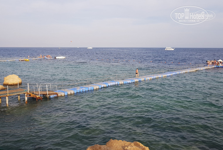 6. Пляж: расположен чуть выше моря. Состоит как бы из трех частей возле моря.Вход в море - с небольшого понтона, а также с двух лесенок прямо к морю - это чисто для детей - там воды по пояс. Понтон в виде пластиковых бочек - метров 30. С понтона можно было и понырять и насладиться ОГРОМНЫМ количеством рыб. Рифы - великолепные. Вода чистейшая, прозрачная.