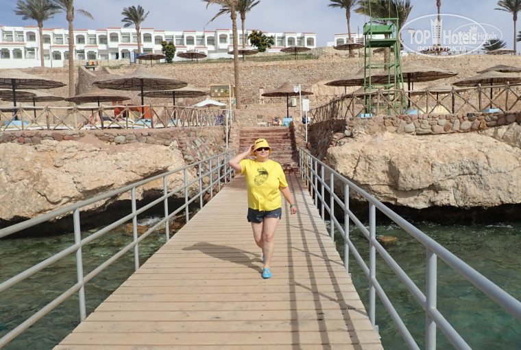 Пляж. У отеля хороший пляж, отличный удобный качественно сделанный короткий понтон за что отелю надо ставить пятерку, удобный не утомительный по сравнению с другими отелями в Шарме спуск к морю. Лежаками не пользовались, так и не получали не разу полотенца. Портит слегка воспоминания о пляже установленный в неудобном месте пляжный бар (в котором каждый день всё заканчивается, или надо ждать что еще не привезли) с пятью столиками НА ВЕСЬ отель.