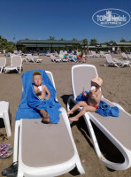 Отель я выбирала под детей и мои мальчишки 3 и 5 лет остались очень довольны. Им было с кем играть, так как ребятишек в отеле много! Территория большая, есть где побегать, пляж и вход в море прекрасные, нет камней. Мы приходили на пляж к 10 утра и всегда устраивались на самой первой линии возле моря, проблем с лежаками не было! После обеда обычно был полупустой пляж (на фото это видно). Море очень тёплое и не было изнуряющей жары, погода +30. Мини клуб детям очень понравился, не было навязывания платных услуг. Кто хотел, расписывал футболки и сумочки за 15 $, мои дети просто делали различные бесплатные поделки и на мини диско получали за них дипломы, чем были очень довольны. Большой привет аниматору Жанне из Карелии, мои мальчишки ее очень полюбили.