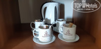качество в данном случае превышает цену. Прекрасный персонал - от ресепшн до клининга. Номера в целом хорошие. Нам на двоих достался 4х местный номер с боковым видом на море (6 корпус) с балклном и весьма приличной ванной комнатой. Хотя бронировала "standart". В номере есть чайник с чайным набором. В ванной куча средств для мытья. Даже тапочки и сумка с лого отеля есть! И это в 4????!