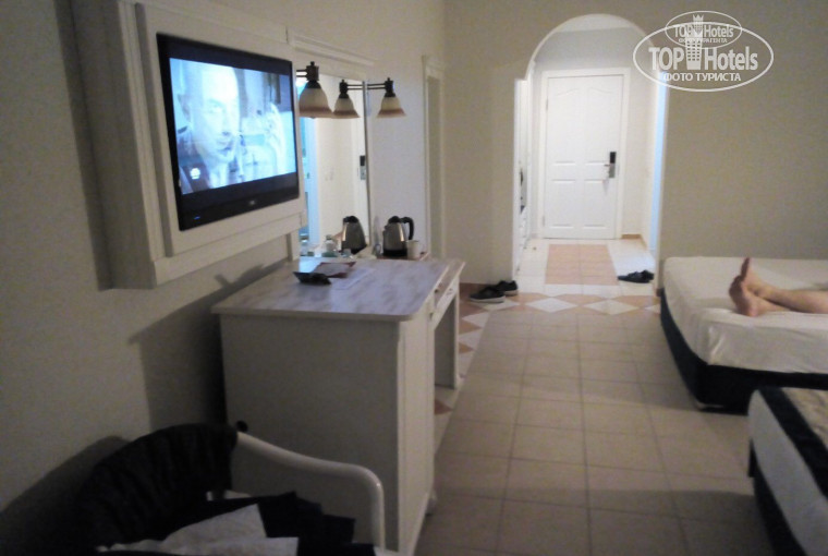 Теперь о самом отеле. Родителям все очень понравилось, дали без доплат номер на 3-м этаже с видом на бассейн и частичным видом на море. Номер большой, вся мебель новая. Моря очень близко, на пляж ходили прямо в купальниках. Очень радовались, что пляж отеля находится в бухте и нет волн. Едой тоже остались довольны, говорили было много всего и все свежее и вкусное. Единственно, отель далековато от цивилизации, аптек поблизости они не нашли.