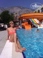 Бассейны: 4 бассейна: 2 маленьких, 2 больших.те,которые возле бара, работают до 18.00. а то мой сын сразу после заезда плюхнулся купаться, его вежливо "попросили". другие 2 бассейна работают до 22.00, но мы купались и позже (без беспредела, конечно), иногда и в 00.00 расходились, никто ничего не говорил.горки включают 2 раза по часу с 11.00 и с 16.00. прикольные горки, накатались и дети, и взрослые.