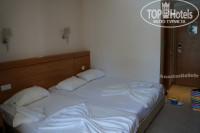 Номер cамый обычный, не тесный, но и не просторный. В номере: две кровати: двухспальная (матрас цельный большой, не продавленный) и полуторка; кондиционер; холодильник; шкаф с плечиками, но без полок; сейф (не пользовались); телевизор (не смотрели); стол с ящиками; тумбочка; балкон, на котором пластиковые стулья и столик; душ, туалет, умывальник – всё работало исправно; фен.