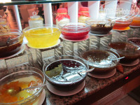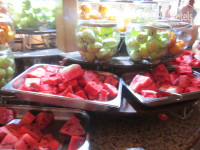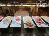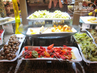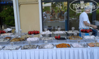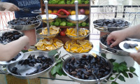 Много морского.Креветки,кальмары,мидии,несколько видов рыб на гриле(дорадо.форель речная и морская,треска...)Рыба копченная и соленая.С июля разрешен отлов раков,так что раки присутствовали.Кроме рыбы в этот день есть 2 вида мяса(для моей дочери,которая не ест рыбу вообще)
