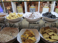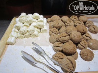 Завтраки:жареные овощи(баклажаны,перцы,кабачки),картошка фри,картошка по деревенски,4 вида молочных каш,2 вида супа,блины(очень вкусные),оладьи,яйцо 5 мин.,яичница(глазунья,с помидорами,с овощами..),сосиски белые(вкусные) и красные.Варенье 15 видов(инжирное,апельсиновое,из лепестков роз,баклажанное.какое то из корки.но не апельсиновой.малиновое,вишневое и т.д.,джемы.пасты...Мед в сотах,не в сотах,халва,рахат лукум несколько видов,всякие сухофрукты,печенюшки,печеные пироги:сметанный,шоколадный,много выпечки из слоенного теста и т.д. Фрукты.Сливки взбитые,масла,сыры,колбасы,свежие овощи,оливки и много еще другого.можешь сама налить или попросить налить кофе,чай,сок .И люди с завтрака ушли голодные,вся семья....Фентези...Ведь понапишут...