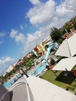 Территория. На территории отеля 4 бассейна. 2 больших (один на верхней террасе, для взрослых) бассейна с глубиной 1,40 м. 1 бассейн с горками (5 горок, но 1 не работала, горки работают по времени), 1 детский бассейн с 2 маленькими горками и грибком.