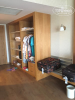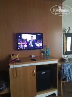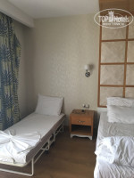 Номер: наши номера (как и ожидалось) дали на четной стороне, те , что выходят на дорогу. У нас был 404, а у родителей 410. Наш (404) довольно большой номер. С двумя 1,5 спальными кроватями, составленными вместе. У ребенка раскладушка на колесиках с матрасом. Так же в номере кресло с журнальным столиком, прикроватные тумбочки, холодильник с водой (газ, безгаза у нас пополнялись каждый день, кроме четверга), телевизор с несколькими русскими каналами, шкаф (без двери) с полочками и большим количеством вешалок. Мебель вся в очень хорошем состоянии.